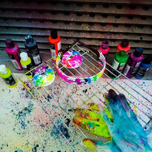 HD25s in rainbow splatter design #Sennheiser #HD25 #custom #headphones