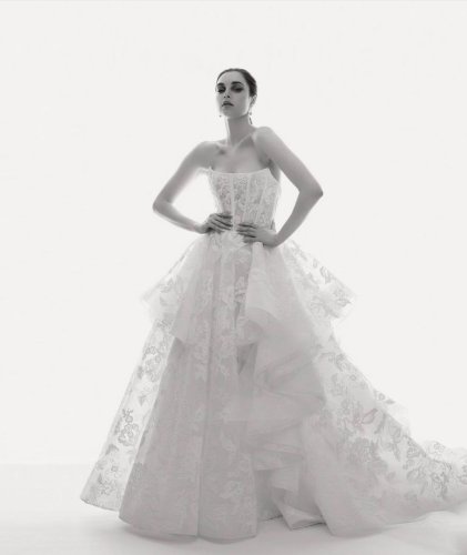 Highlighted by attention grabbing necklines, delicate lace, intricate beadwork and dramatic ruffles, each carefully considered element creates a true showstoppe...