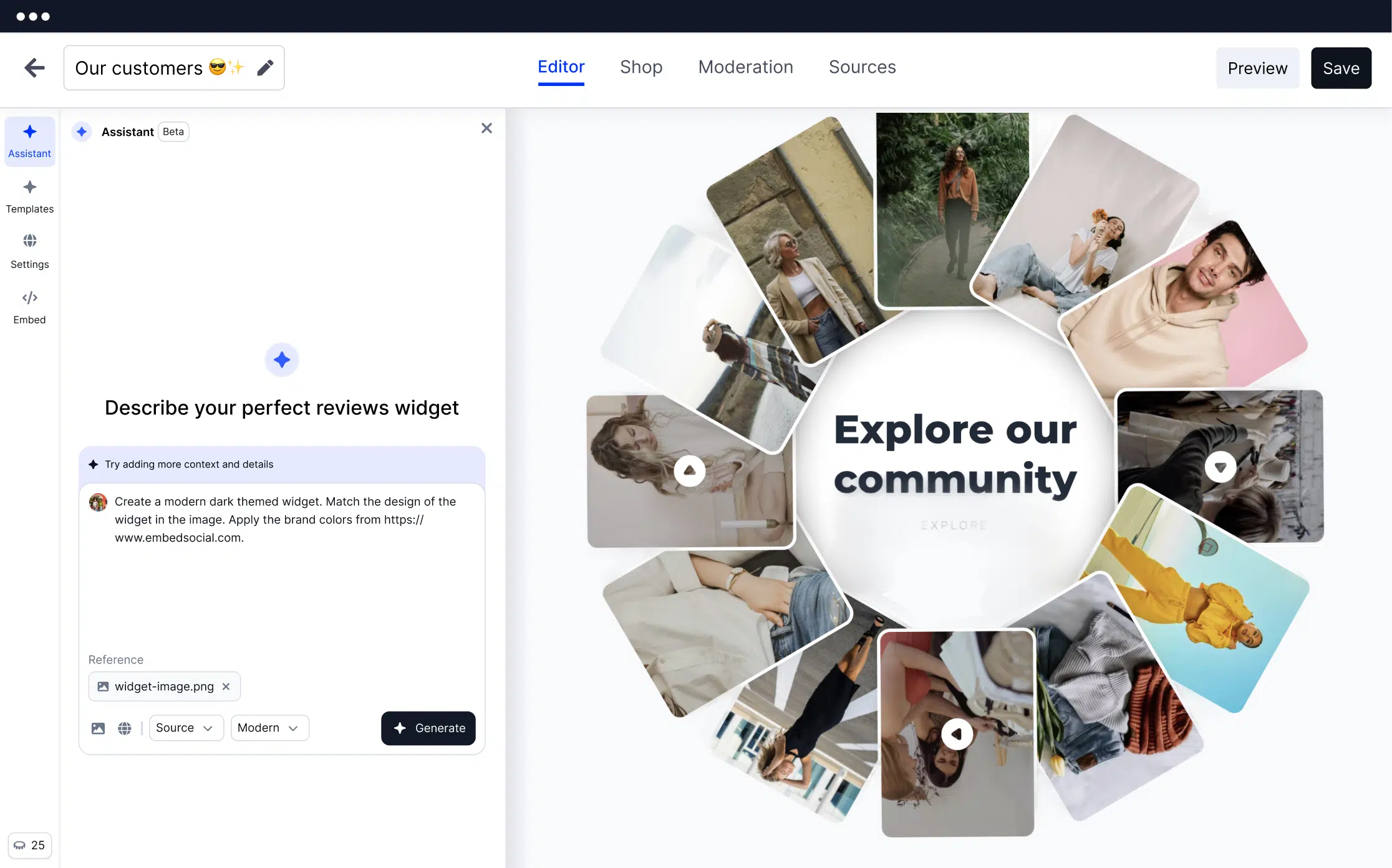 ✔️ 200+ templates (widgets, sections, and components in the EmbedSocial platform)